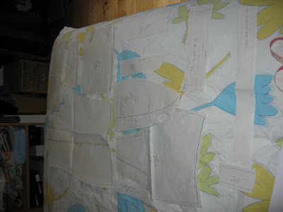 Du coup, j'ai pris mon rouleau de nappe en papier, et me voilà partie dans le patron du short fétiche... bon un peu adapté parce qu'évidemment, toutes les coutures tournent et si je veux avoir une chance que les pièces tombent l'une en face de l'autre au montage, j'ai pris quelques libertés.