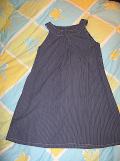 Version bleu marine à fines rayures blanches (toto) : oui c'est le même tissu que la tunique sans photo de l'autre post ;)