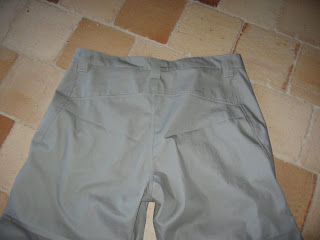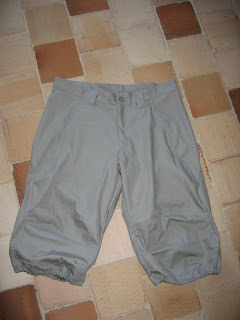 Les modifications que j'ai apportées : suppression de l'unique poche aux fesses (elle ne servait jamais et je me mettais toujours plein de sable sous les ongles à la vider avant le lavage), il y avait des petits boutons poussoirs pour régler la taille des élastiques en bas des jambes : ils ne servaient jamais, oust : il y a sur le jumeau des élastiques fermés dans les coutures, comme sur un bloomer ;)