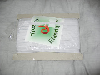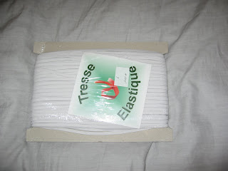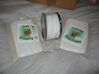 Comme expliqué ici, j'ai fait une grosse commande d'élastiques et j'en ai bien pour les 50 ans à venir ! J'avais aussi acheté il y a longtemps des rouleaux de 150 m de biais, que je consomme très très doucement...