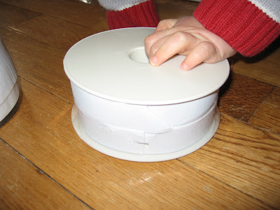 - retourner le tissu à l'intérieur du carton, coller ou agrafer (moi j'ai agrafé parce que ce sera à plus de 2m du sol et qu'on ne verra pas les agrafes)