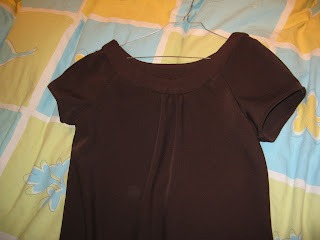 C'est le modèle de la mini robe avec fronces en T 10 raccourcie en tunique, élargie dans le dos pour faire un pli creux, un peu modifiée au niveau des emmanchures pour cacher les bretelles du soutien gorge et avec des plis devant à la place des fronces.