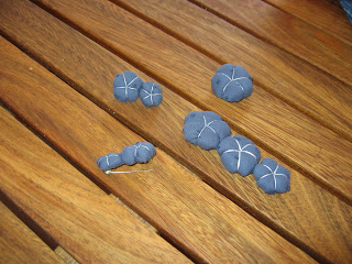 Bon, je triche un peu... la triple n'est pas encore fixée sur une attache : les miennes sont trop petites, je n'ai pu faire que des doubles : il faut que je fixe les triples sur un petit bout de carton ou quelque chose pour rigidifier avant de fixer l'épingle.