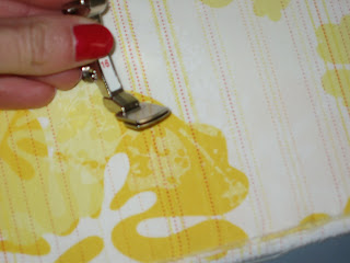 Lorsque l'on veut froncer une bande de tissu, il suffit de la mettre sous le pied avec un point long.